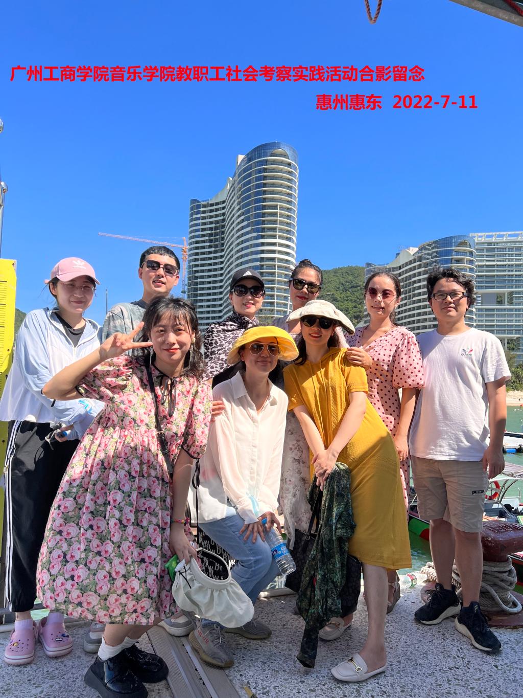 为提高教工团队凝聚力,加强教师思想政治工作,引导教师更好地了解国情、开阔视野、提高思想认识,努力践行社会责任、培养时代新人。7月11日,音乐学院分工会组织学院教职工,分赴广州南沙、惠州惠东开展了为期3日的“永远跟党走,奋进新征程”的社会实践活动。