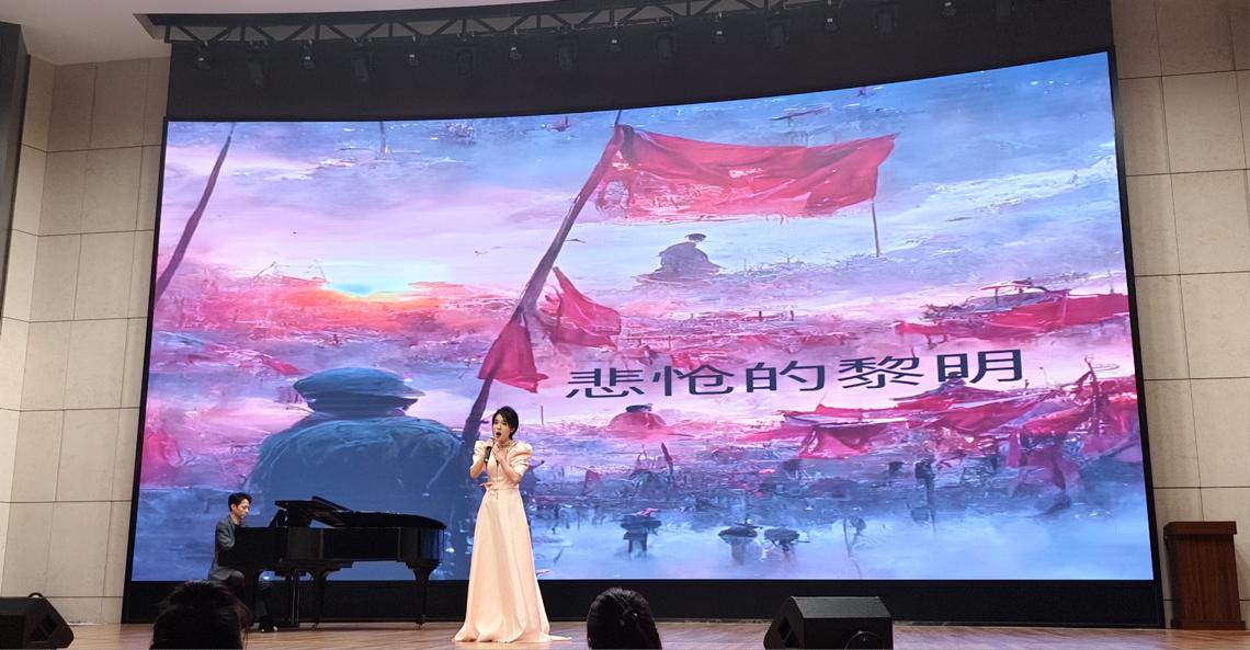 临近党母亲的七十五周年诞辰,纪俊娟教授的学生们用歌声祝愿党青春永驻,音乐会中的一首首经典作品宛如画卷,画卷中的每一个场景,都让人仿佛置身于那个波澜壮阔的时代,感受到革命先烈的热血和激情。余音嘹亮,琴声悠悠,同学们以饱满的热情展示了良好的专业能力和音乐素养,展现出音乐学院浓厚的学习氛围和学子们良好的精神风貌。不仅培养和提高了学生的艺术素养,丰富了校园文化生活,更对音乐学院进一步推进思政综合育人工作作出了积极响应和示范。学生们用歌声表达了对革命先烈的敬仰之情,用音乐传递了对伟大祖国和党的热爱之情!