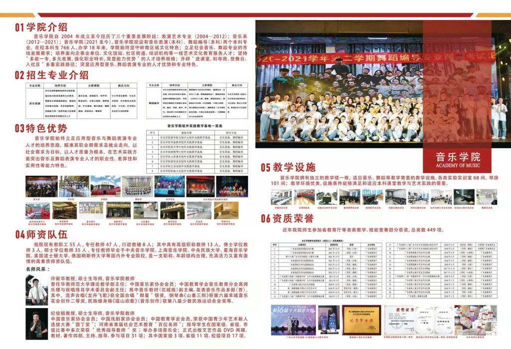 随后舞蹈编导专业康小曼副教授、音乐表演专业苏洋老师、刘人玮老师通过视频展示的方式向在场的师生介绍了我院两个本科专业以及艺术实践团体的详细情况。刚获得广东省第十六届校园歌手大赛冠军的李文彬同学是我院2019级专升本的学生,他也向茂名幼师的师弟师妹分享了入读我院的学习、生活情况。