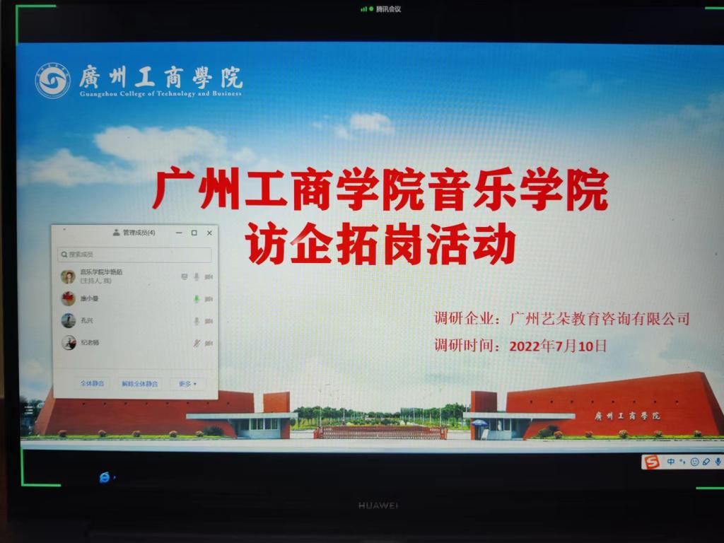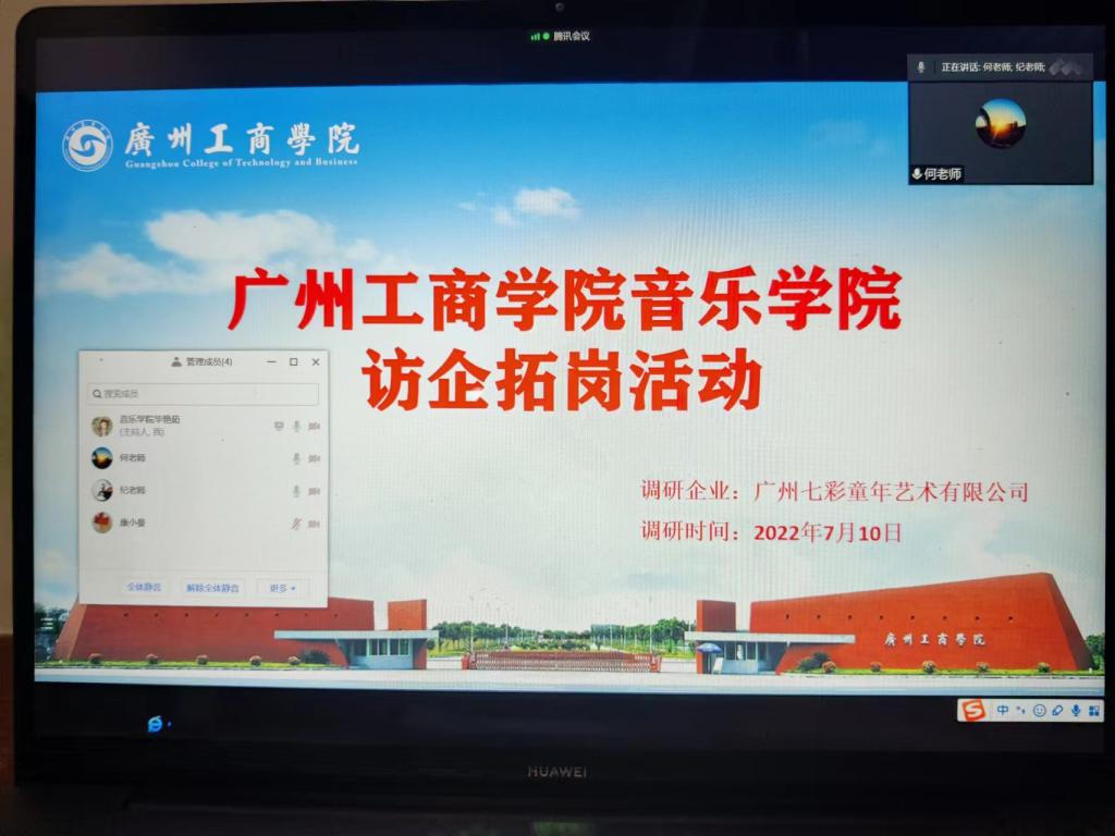 7月10日,我院分别与广州艺朵教育咨询有限公司、广州七彩童年文化有限公司开展了线上访企拓岗交流会。音乐学院院长纪俊娟教授、艺朵教育黄孔兴校长、七彩童年何刚毅校长参加了会议。