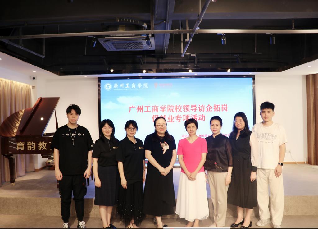 4月25日下午,我院首场校领导访企拓岗专项活动在广州育韵文化传播有限公司(以下简称“育韵教育”)举行。学校财务总监黄金要女士、音乐学院院长纪俊娟教授、育韵教育教学总监温欢容老师、运营总监罗艳老师出席参加了活动。