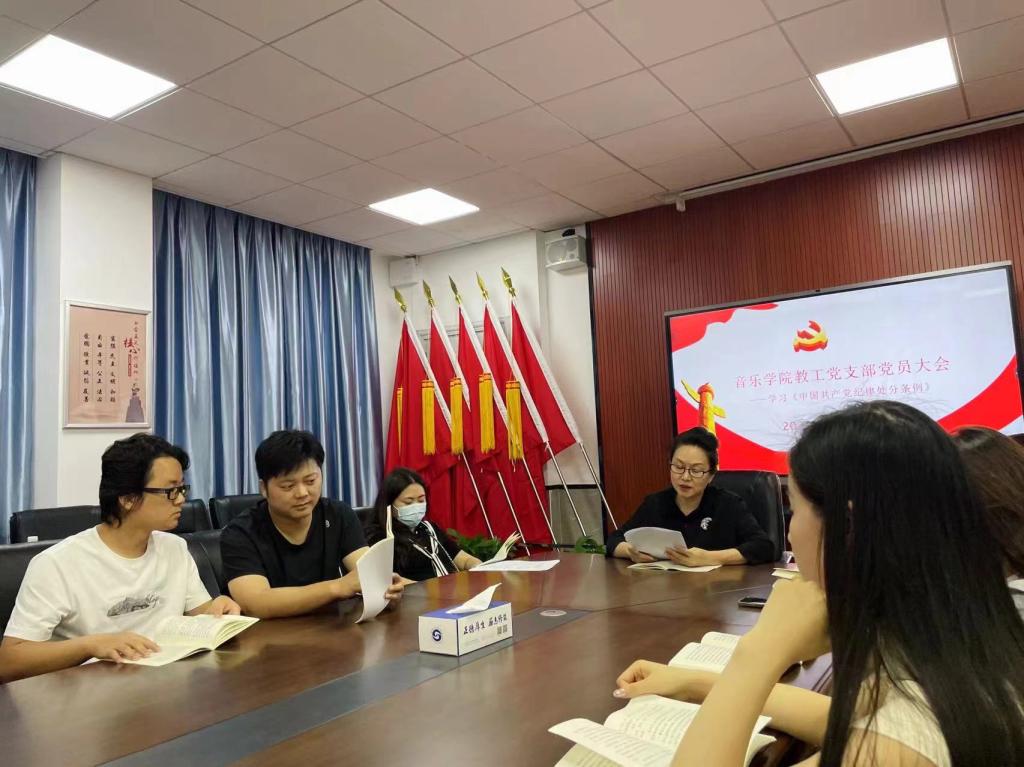 5月12日下午,音乐学院教工党支部组织开展党纪学习教育,全体党员共同学习《中国共产党纪律处分条例》。