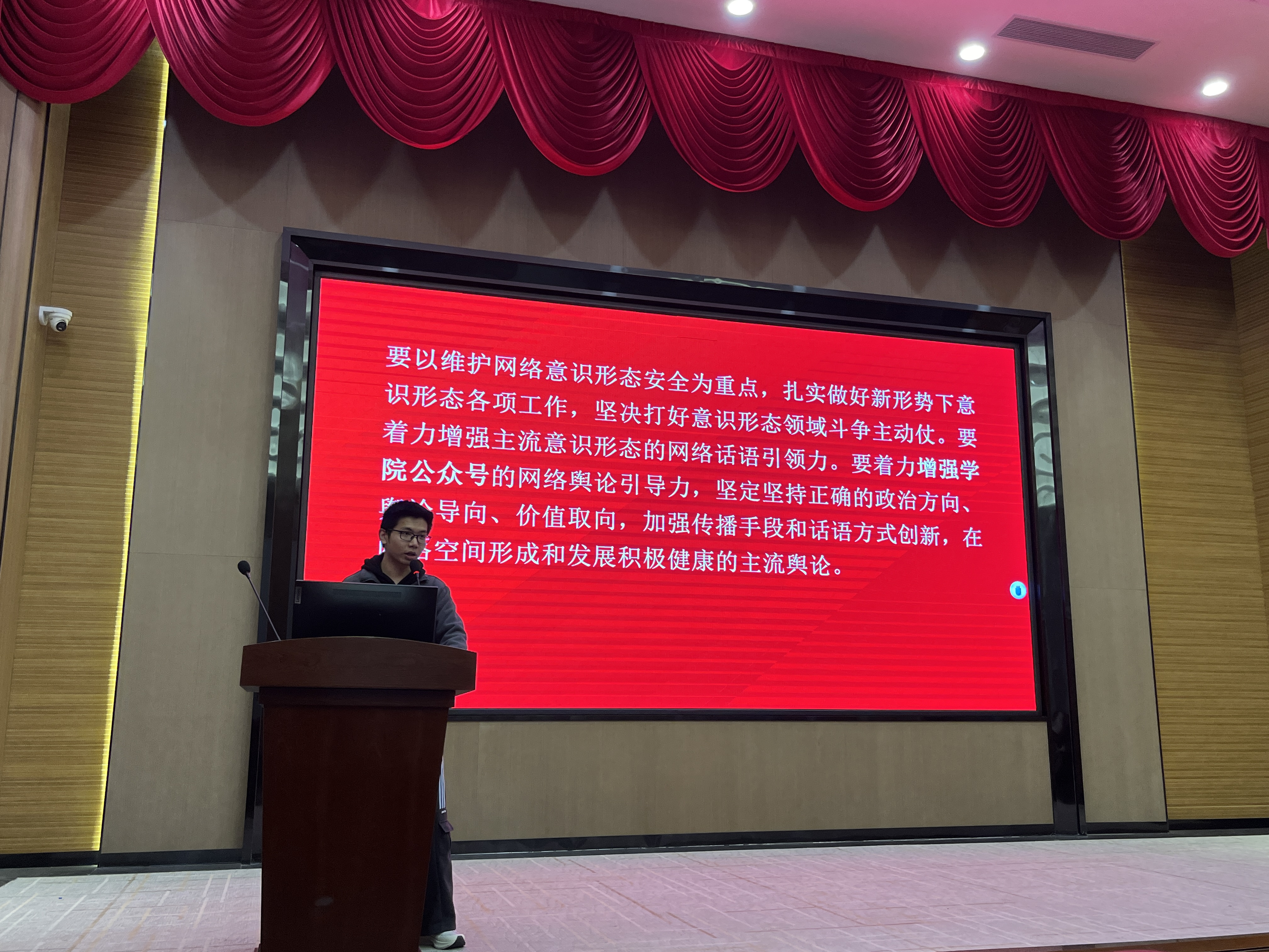 会议期间,刘宇航强调,意识形态工作关乎国家政治安全与民族凝聚力,在高校学生工作中占据关键地位。对于团委宣传部及新媒体运营的学生干部而言,其肩负着传播正能量、引导正确舆论导向的重任。