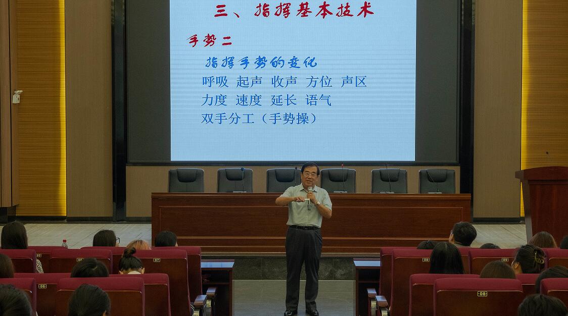 合唱指挥要了解如何正确地发声,何种音色是合唱团所需要的,平教授优美的嗓音深深地折服了在场的学生们,引发阵阵热烈掌声。最后,平教授邀请了在场的同学,上台学习指挥图示,同学们课后表示受益良多。