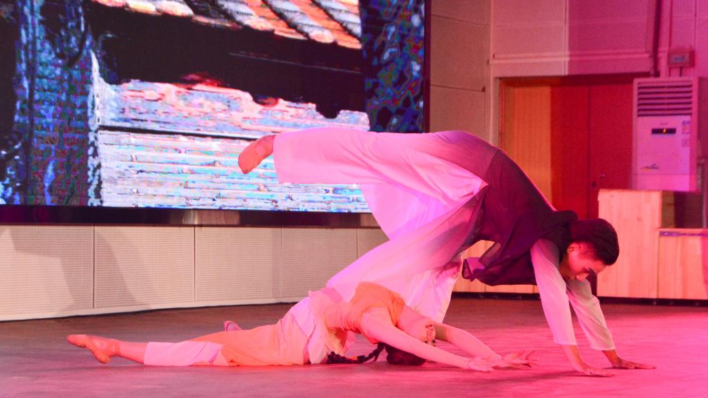 在岭南风格的双人舞蹈《沙湾往事》中,舞蹈演员一个个高难度的跳跃翻腾迎来了观众热烈的掌声。
