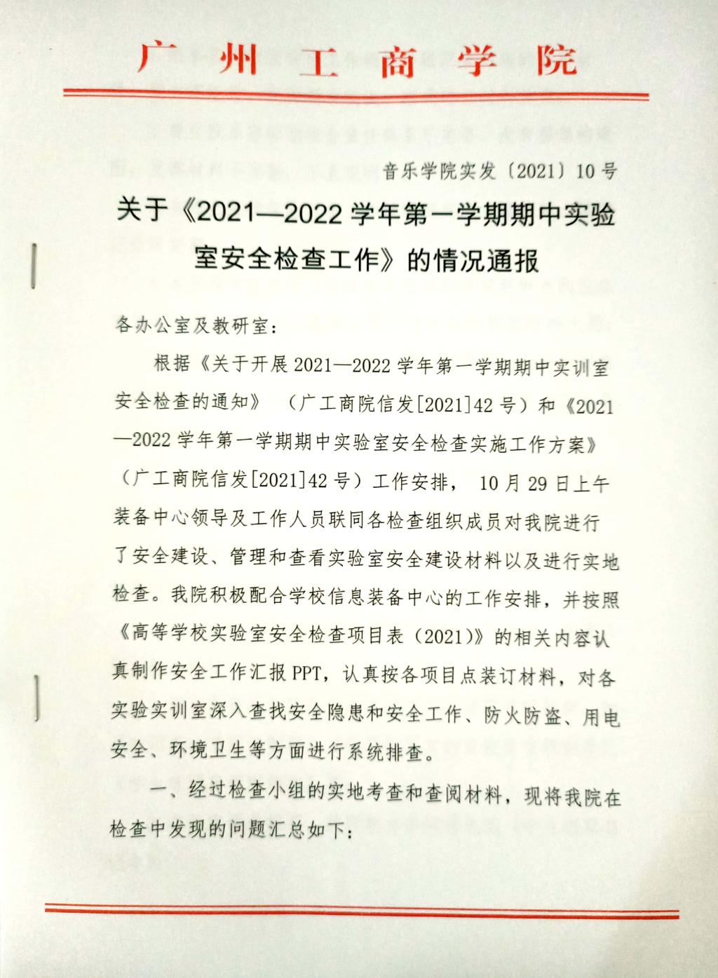关于《2021-2022学年第一学期期中实验室安全检查工作》的情况通报