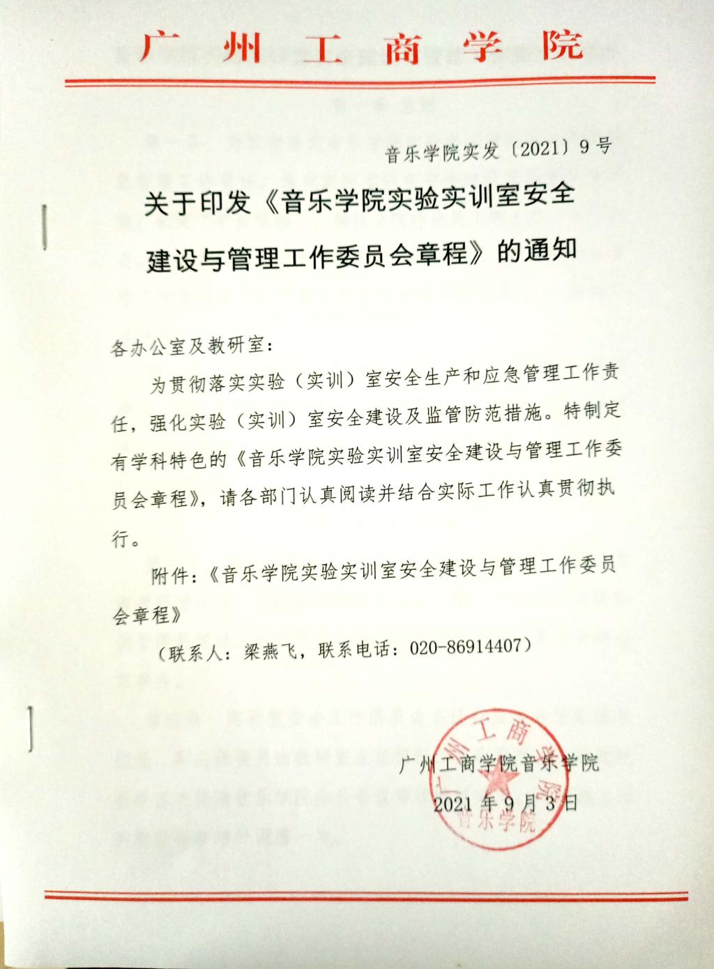 关于印发《音乐学院实验实训室安全建设与管理工作委员会章程》的通知
