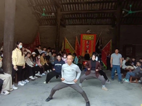 随后师生们来到了徐氏武馆,围绕“醒狮”这个主题,进行了采风学习。武馆的徐师傅向大家讲解了“醒狮”的种类、表演方式及文化意义,还为大家进行了步伐等的演示。师生们听完讲解后,在现场进行了一场即兴的舞蹈创编。