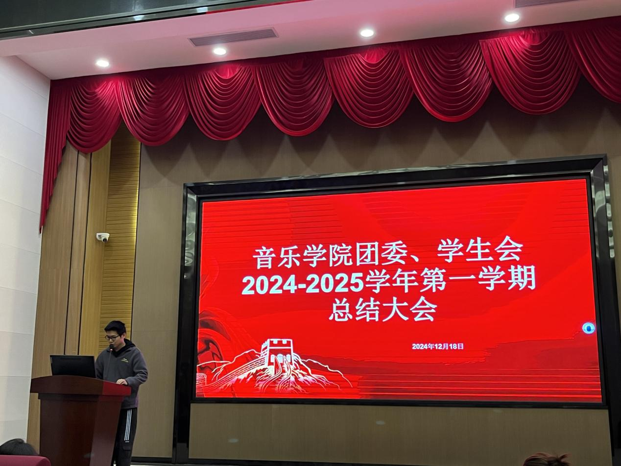 2024年12月18日18时30分,ky开元集团官网音乐学院于学院图书馆416报告厅隆重举行音乐学院团委、学生会2024-2025学年第一学期总结大会。本次会议由音乐学院团委书记刘宇航主持,音乐学院团委、学生会全体学生干部全体参与,共同回顾过去一学期的工作历程,展望未来发展蓝图。