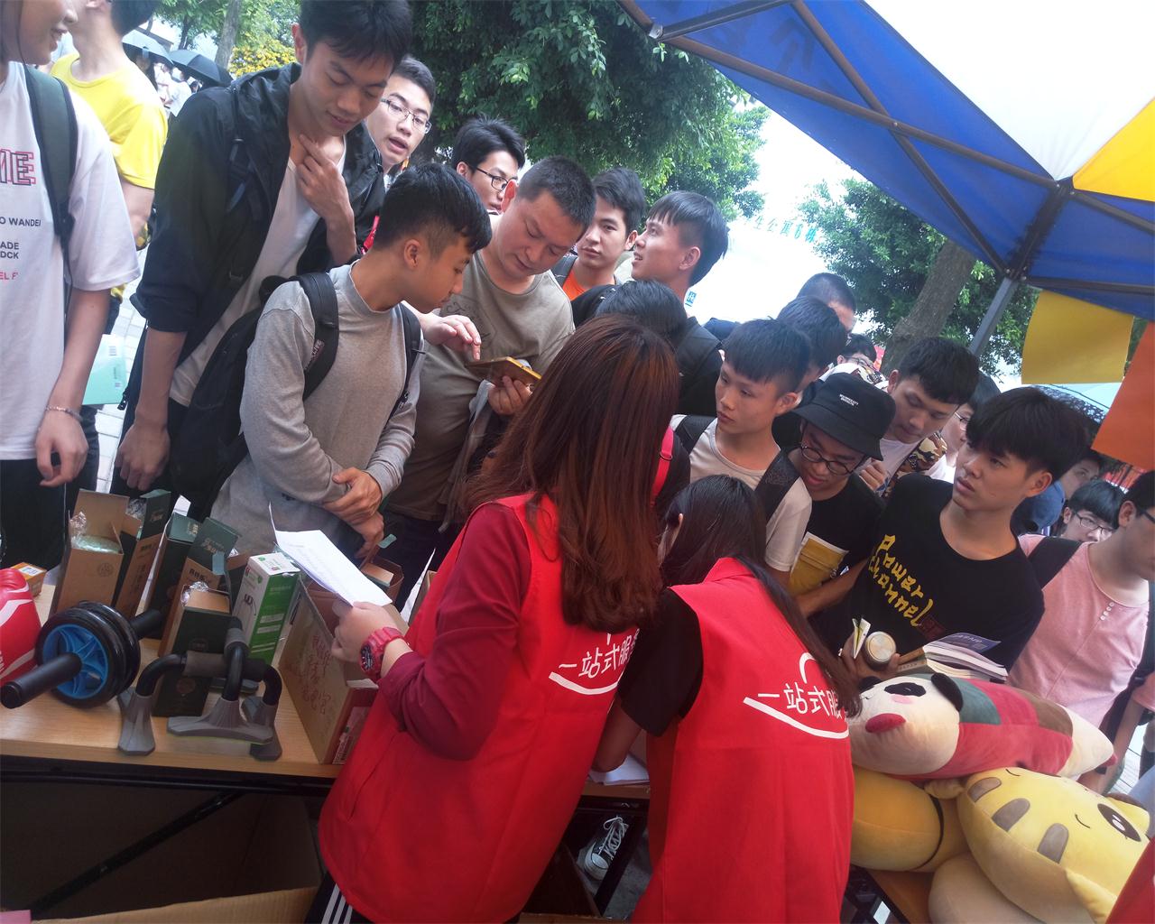 义卖开始后,随着经过摊前的人流量慢慢增加,活动摊前围满了许多过来咨询和支持的同学,工作人员热情地接待了前来咨询的同学,并耐心地介绍了本次活动的目的和作用。活动进行得如火如荼,得到了广大师生的鼎力支持。