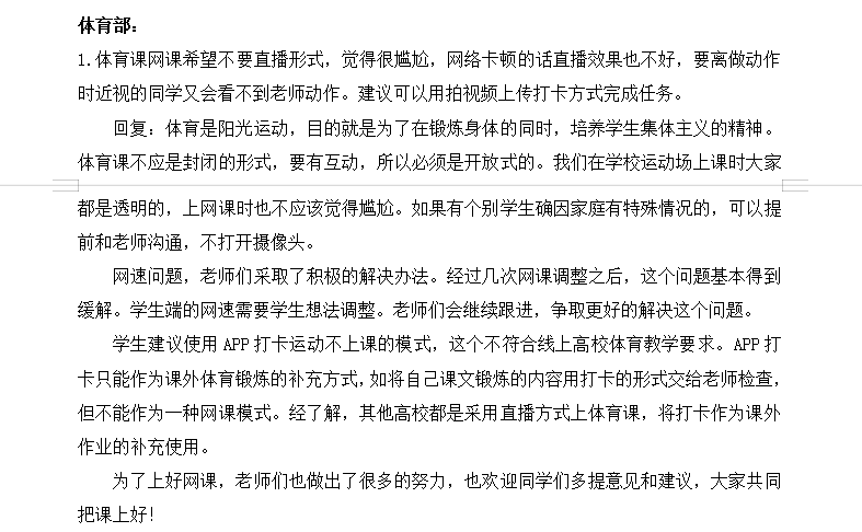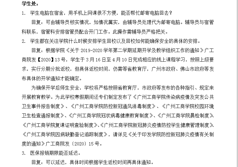 疫情期间,师生未能回校,为了更好的开展教学与管理工作,一站式服务中心开通了网上意见反馈平台,收集了师生关于疫情期间对学院相关工作的意见建议,整理后转相应部门跟进回复。以下是各部门回复意见.