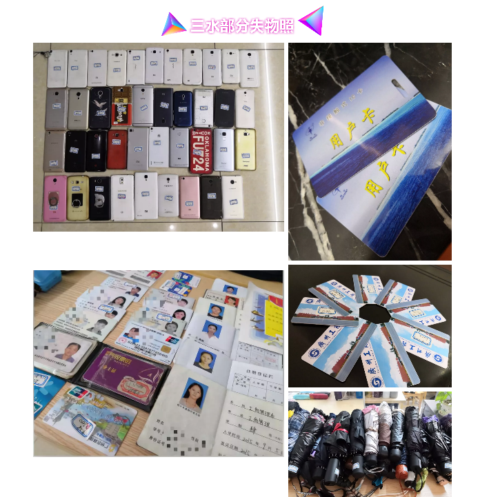 温馨提示:经本次展示后仍未被认领的失物将做处理,不再统一存放。故请失主能够尽快来领回失物哦!