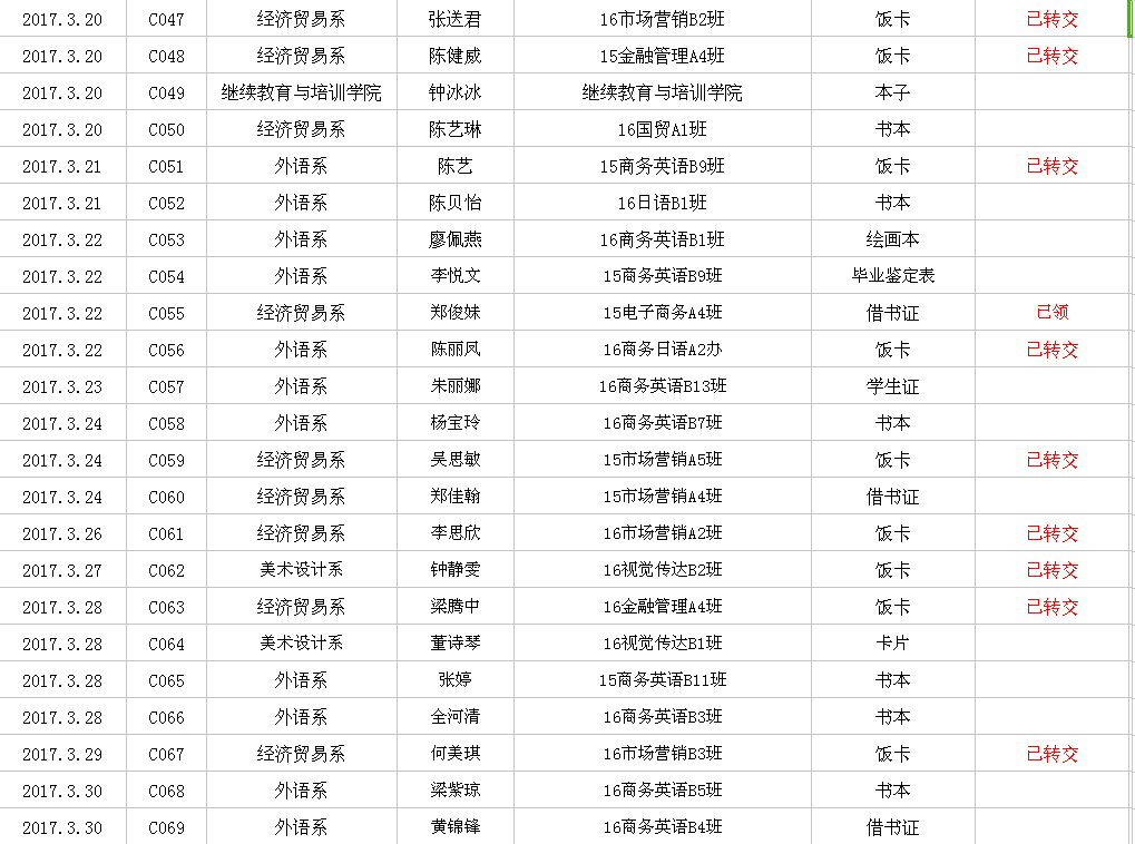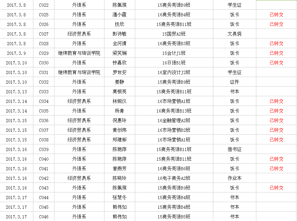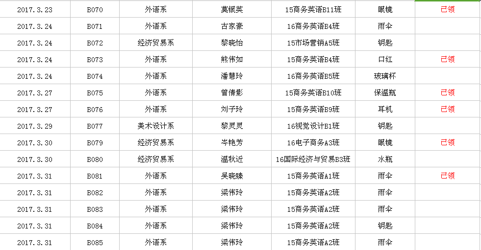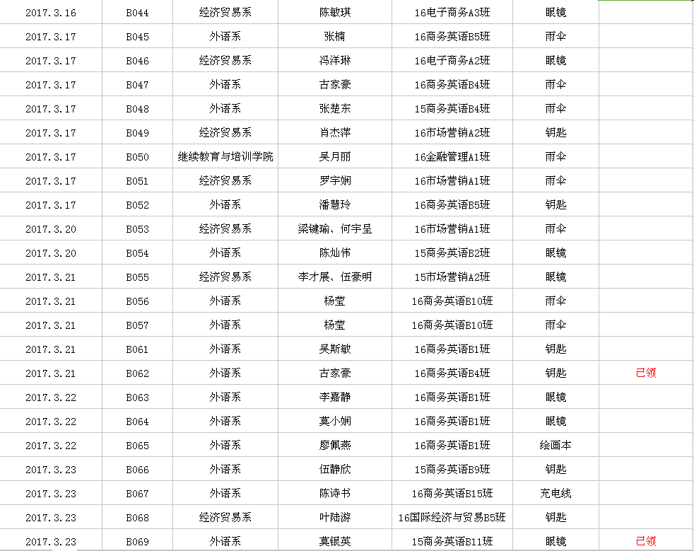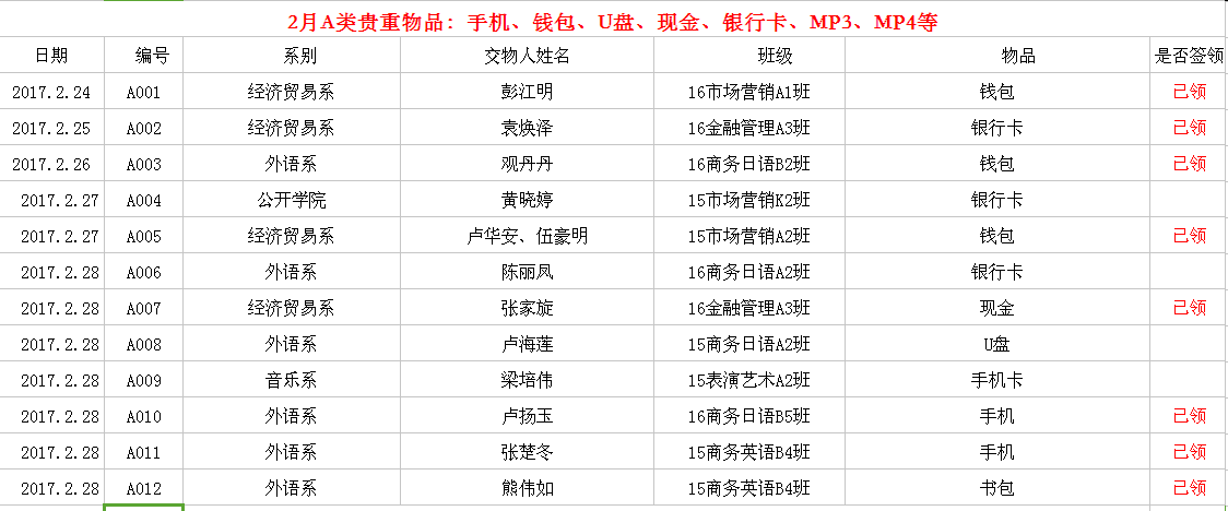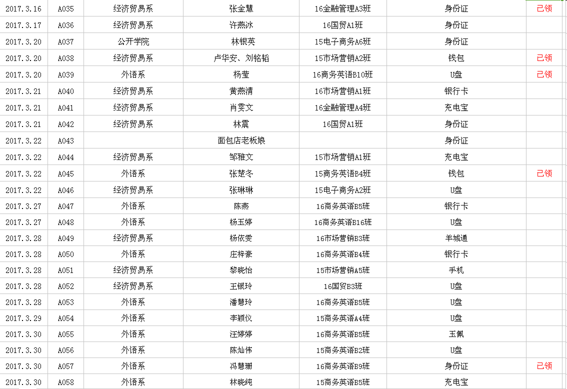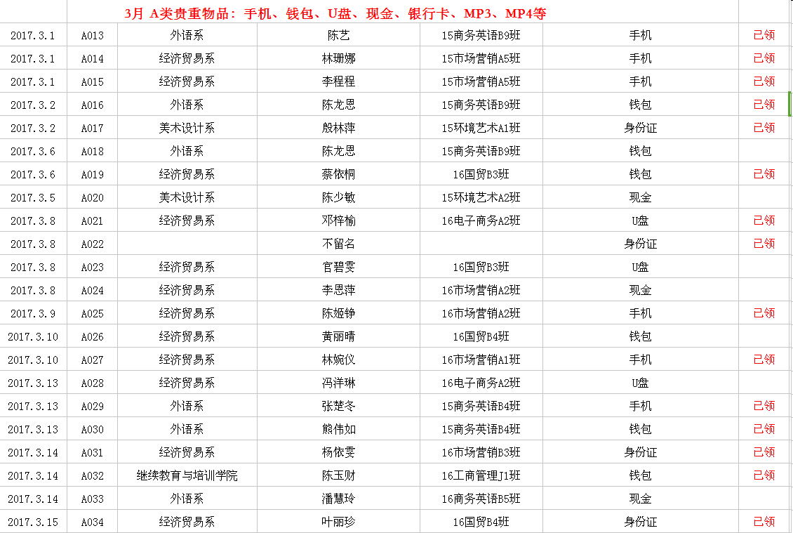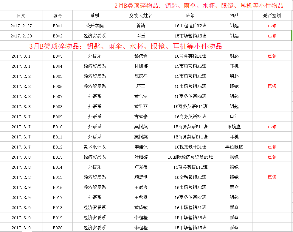 2017年2月-3月失物招领