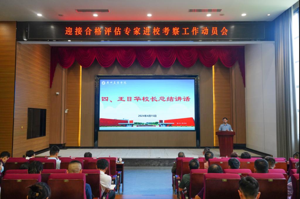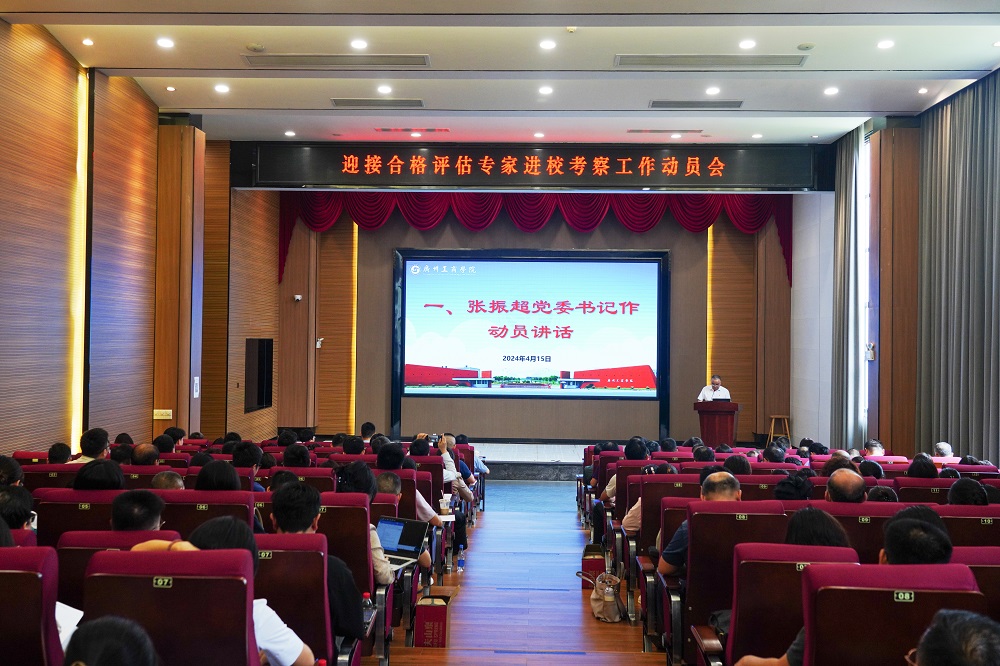 【本网讯】为做好迎接教育部本科教学工作合格评估专家组进校考察工作,学校于4月15日下午在花都校区图书馆414报告厅召开动员大会。高级顾问、校领导、中层领导、专业负责人、教研室主任、各工作组组长、各部门(单位)联络员、专家联络员及质量监控与评估中心全体人员等参加会议。会议由副校长易露霞主持。